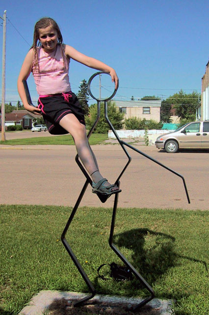 .jpg) I am climbing again, this time a metal dude outside "The Station" in Estevan, Saskatchewan. |