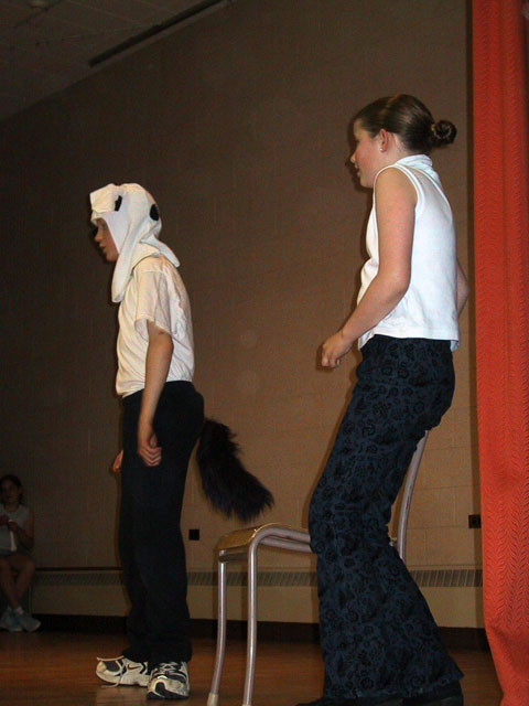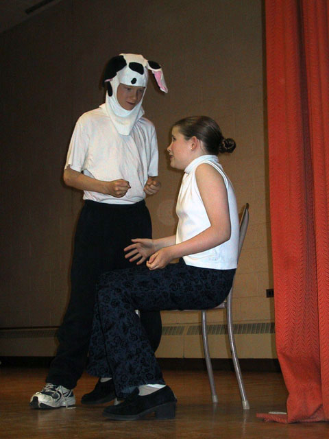 This is me in the Deep River Youth Theatre play: "Aesop's (oh so slightly) Updated Fables". I was in a story called "The Dog and the Bone". I was the narrator and I was afraid of the Dog (my cousin Sean). |