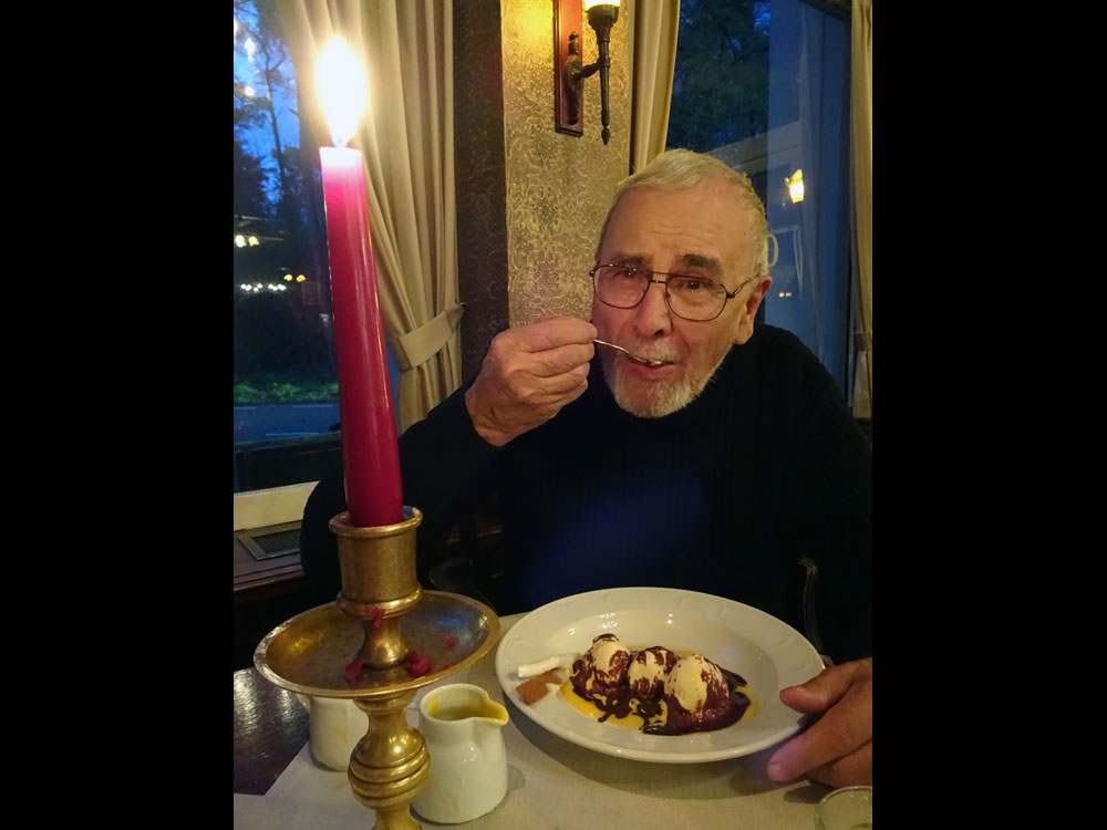 Leslie's father, Hugh David, and his partner, Beverley, arrived in Paris in April. This was their first trip to Paris since our move and we were delighted to show them our favourite places. We celebrated Beverley's 80th birthday with a dinner cruise on the Seine and helped Hugh David tick several items off of his bucket list, including a trip to Ronchamps to see Notre-Dame-du-Haut, a unique chapel designed by Le Corbusier which was an important architectural inspiration to him. We were also able to take him to see the grave of his Uncle Donald Taylor, shot down 70 years ago over Holland, and now buried at the military cemetery in Jonkerbos. Hugh took advantage of our travels to re-discover the perfect Dame Blanche (at a hotel in Breda) where we discovered that it is the addition of advocaat that makes the difference. |