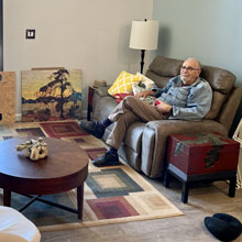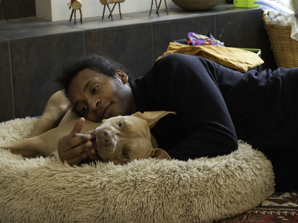 Gosaye had recovered remarkably well from last year's gunshot wounds. He has a bit of foot-drop and numbness in his inner thigh on the right side, but seems otherwise fine. He didn't return to his job at the Pepsi warehouse, but has completed a retraining course in data and is looking for a job. His dog, Lucy, continues to reside with us as he can't have her in his current living situation.